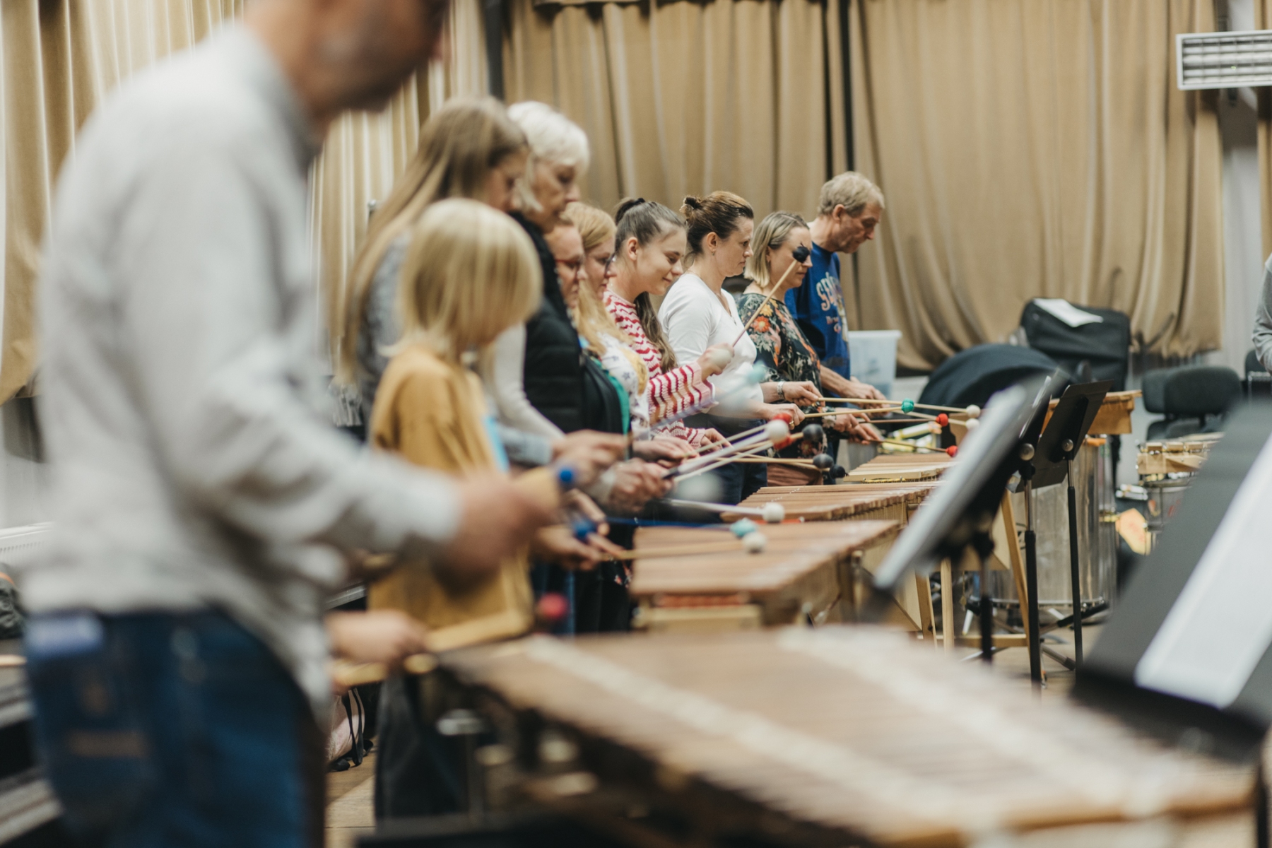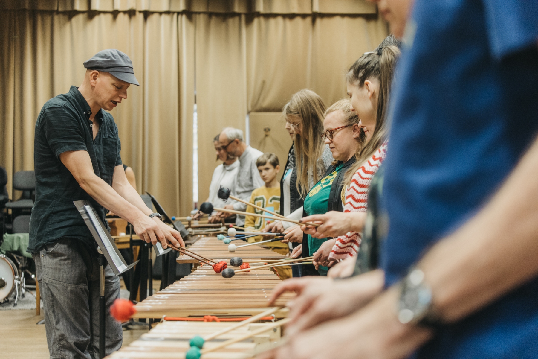 Na każdym z ośmiu spotkań będziemy razem tworzyć zespół marimbistów eksplorujących różne gatunki muzyczne, a każde spotkanie zwieńczy wspólne wykonanie popularnej piosenki z udziałem zaproszonego gościa-profesjonalisty.