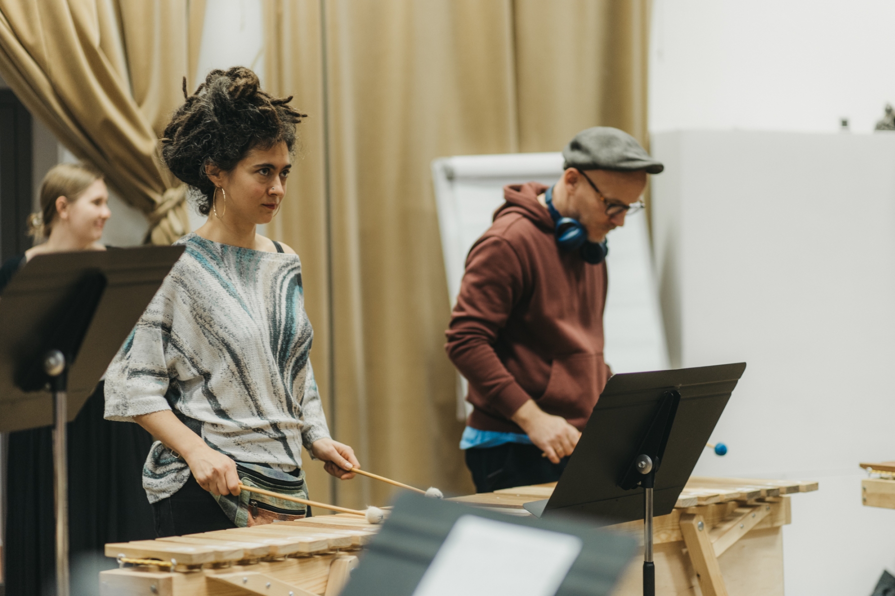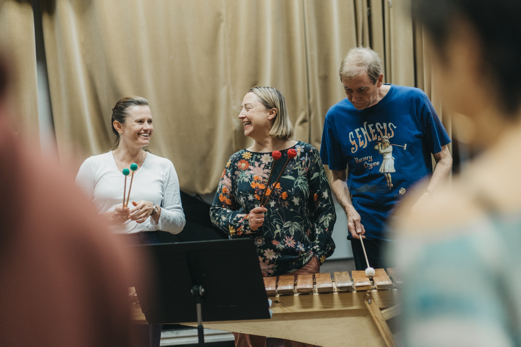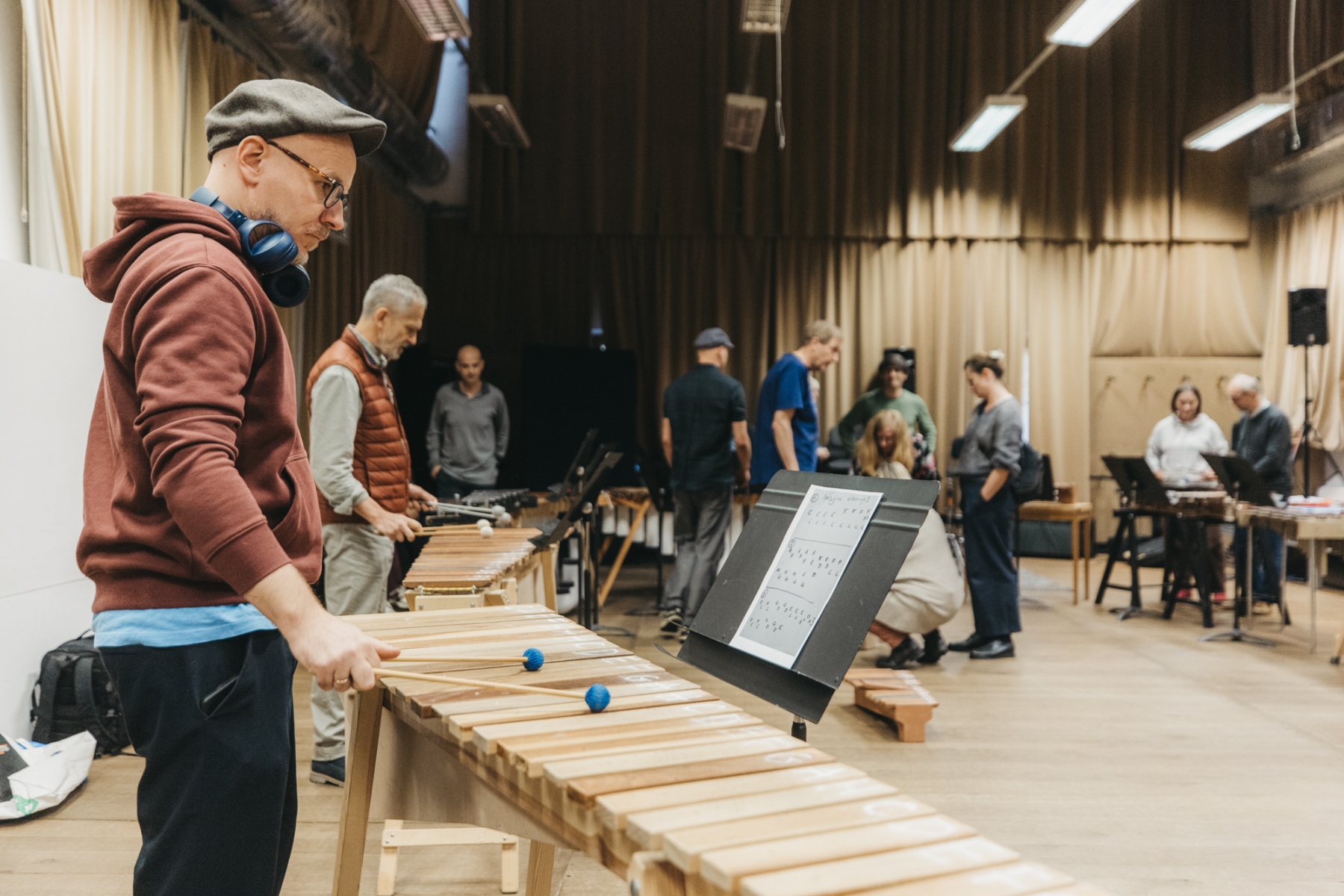 Grający dzielą się na sekcje i wykonują proste rytmy, które sumują się w efektowną muzyczną całość. Miki Wielecki przygotował na potrzeby warsztatów marimby diatoniczne – czyli takie, których sztabki odpowiadają tylko białym klawiszom fortepianu. Każdy z uczestników będzie mieć do wykonania stosunkowo prostą partię, która jest jednak ważna dla pełnego brzmienia utworu. Znajomość nut i techniki gry nie jest wymagana. Pod koniec każdego warsztatu uczestniczki połączą się w kolektywnym wykonaniu utworu.